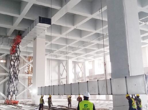 京東方科廠房目前在進行生產車間的通風管道安裝,在安裝過程中工人使用臂式吊車進行安裝作業,由于通風管道較長而吊車的空間有限,工人在安裝過程中非常費力,而且進展度緩慢。
